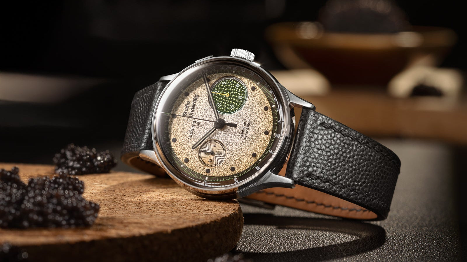 Studio Underd0g's partnership with Massena LAB was unveiled in 2025 at the release of the Studio Underd0g x Massena LAB 03SERIES Champagne & Caviar limited-edition monopusher chronograph.