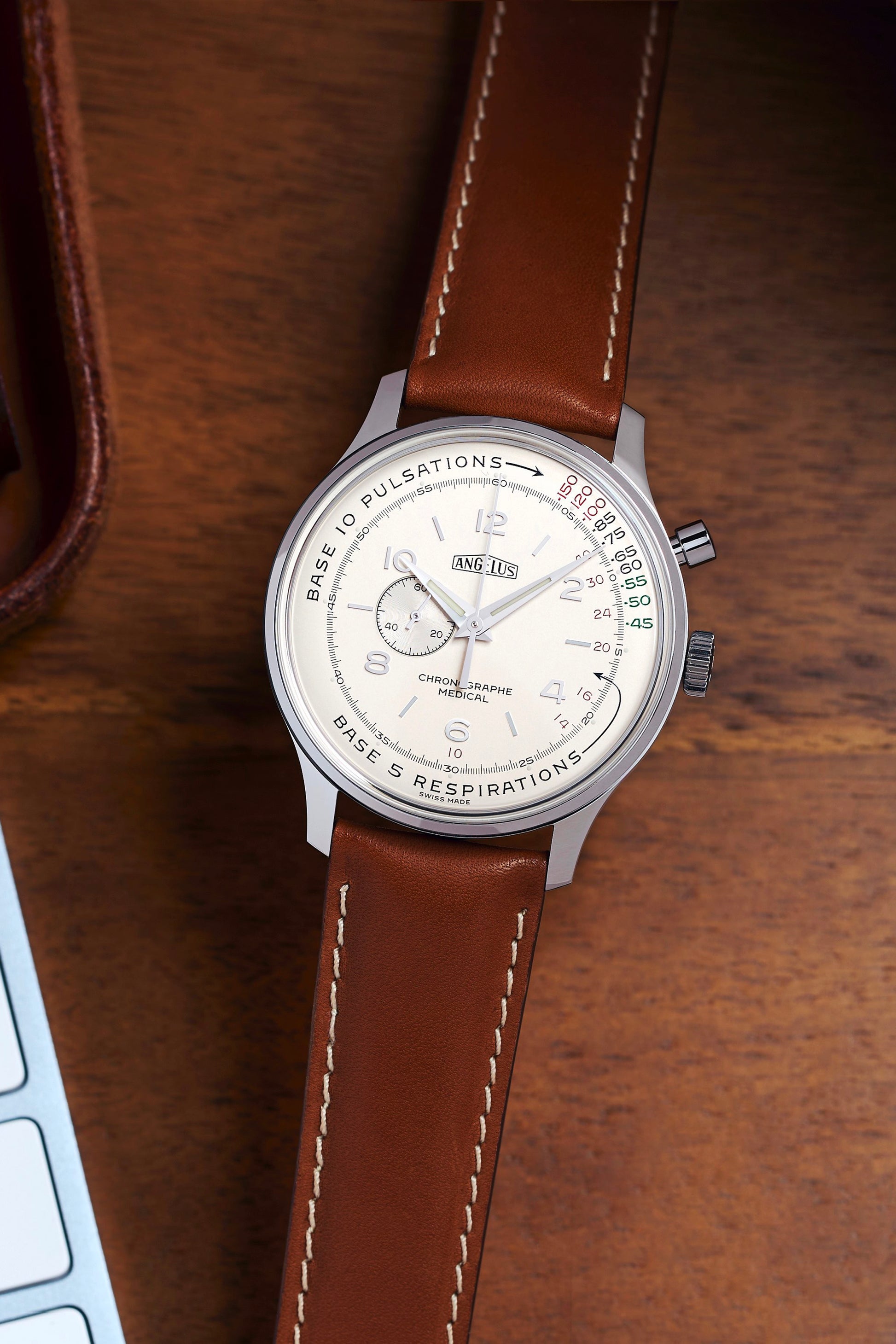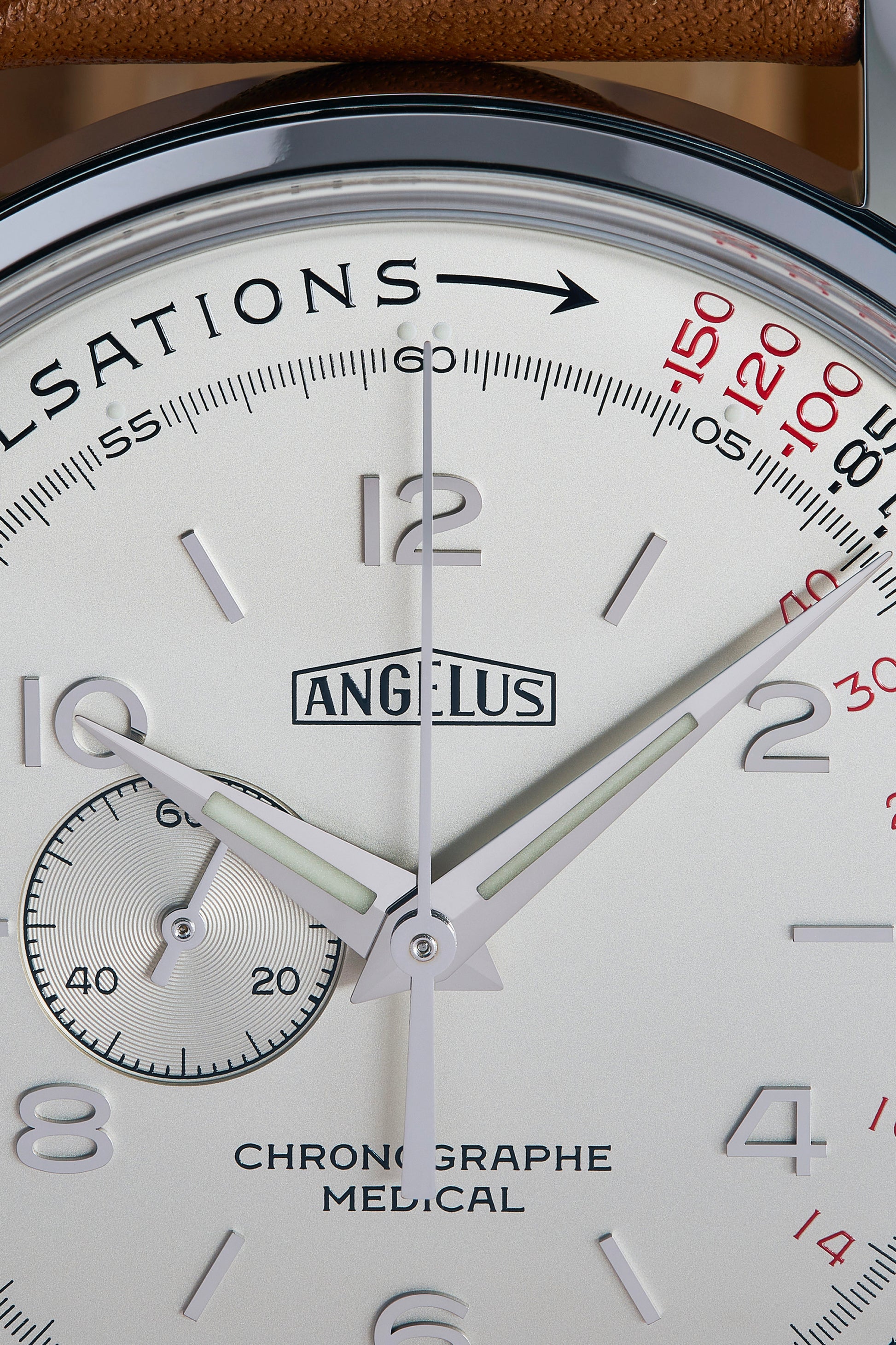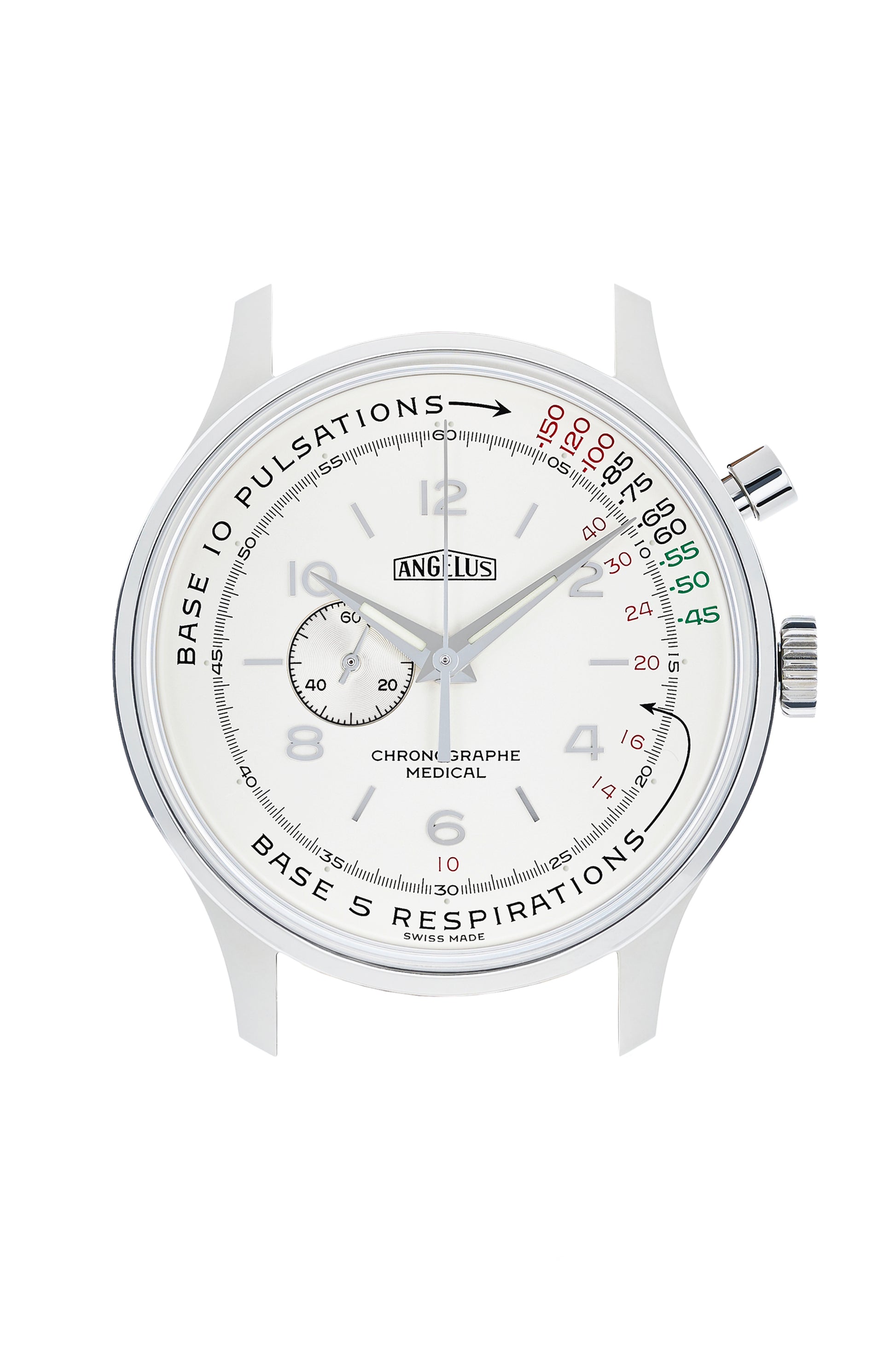 • Monopusher chronograph with small seconds, pulsometer scale, and asthmometer scale.