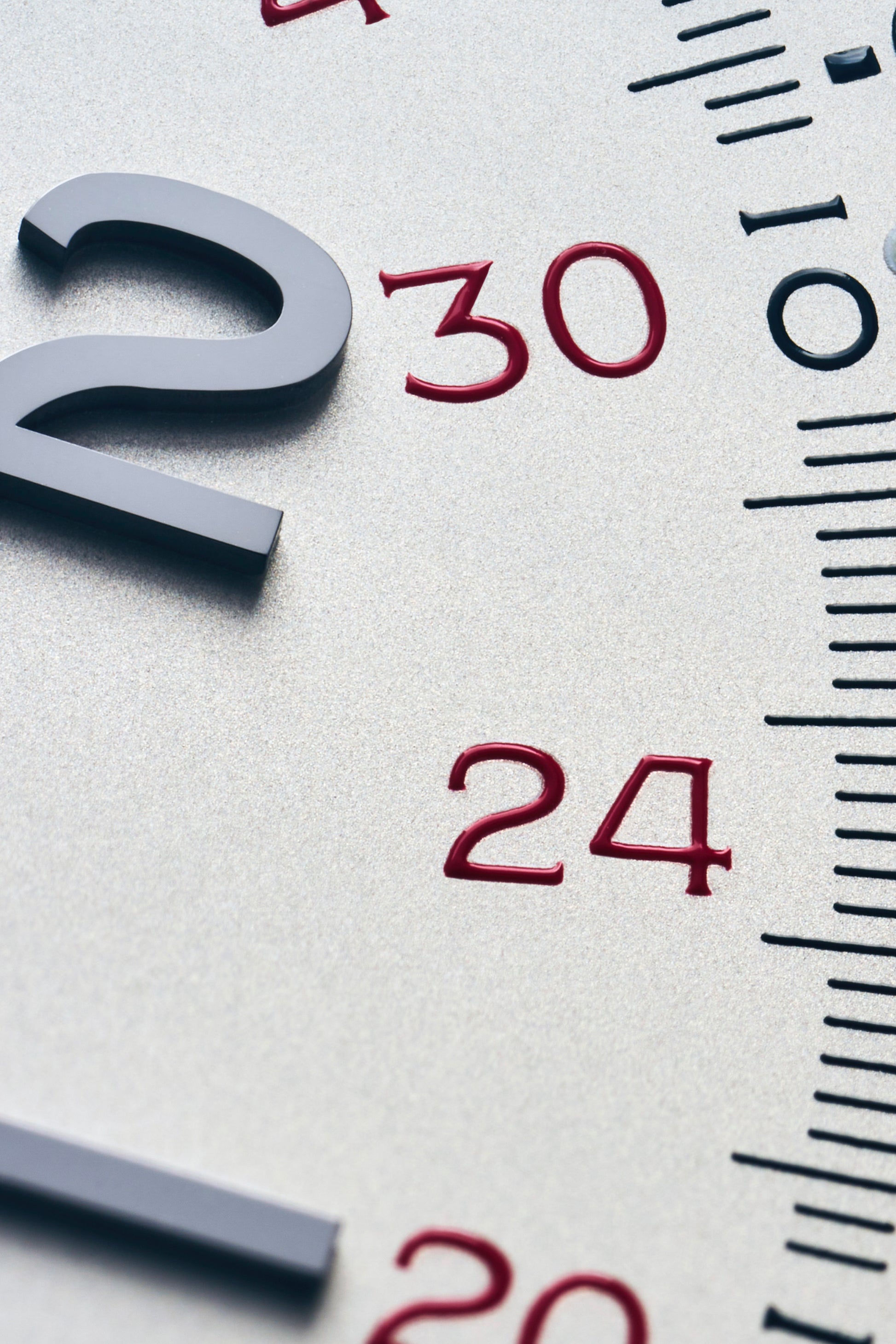 To calculate breaths per minute, the asthmometer scale works in much the same way as the pulsometer scale. Activate the chronograph, count to five breaths, and stop the chronograph to locate the reading. This scale is red to distinguish it from the minutes track.
