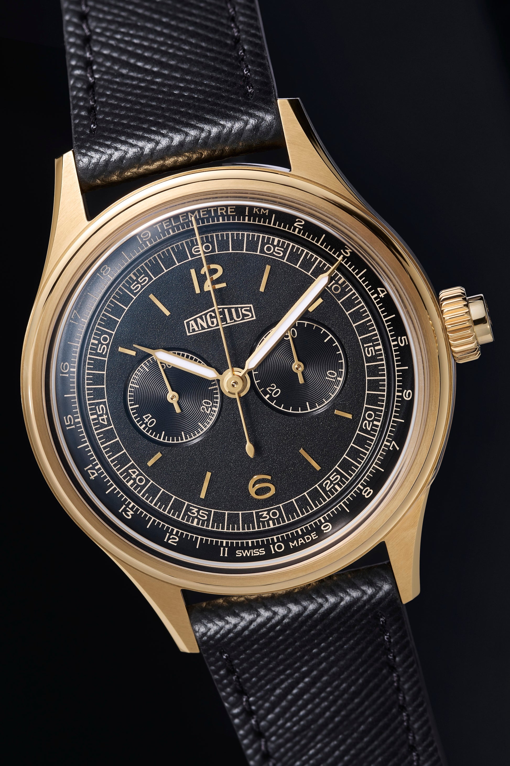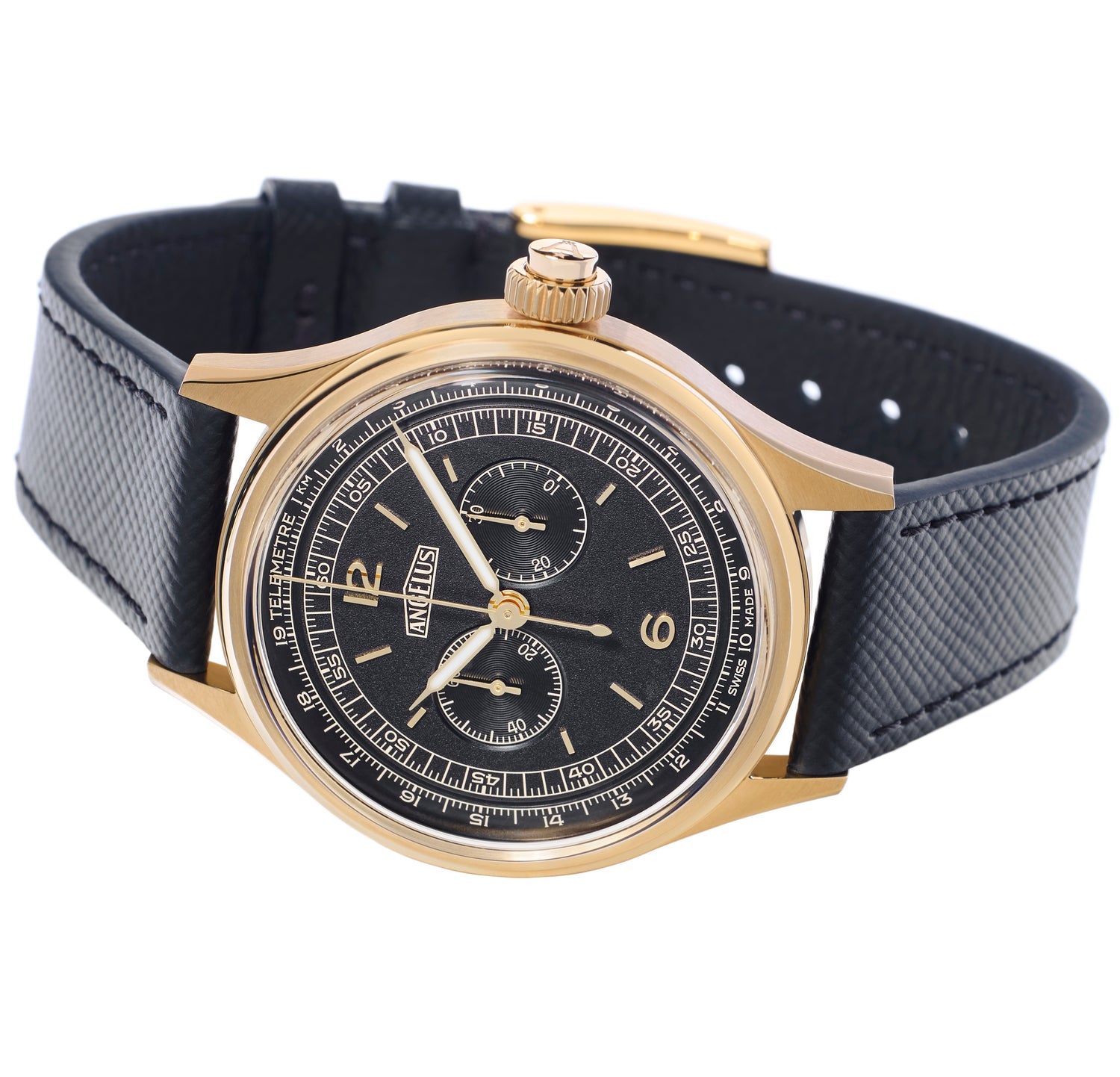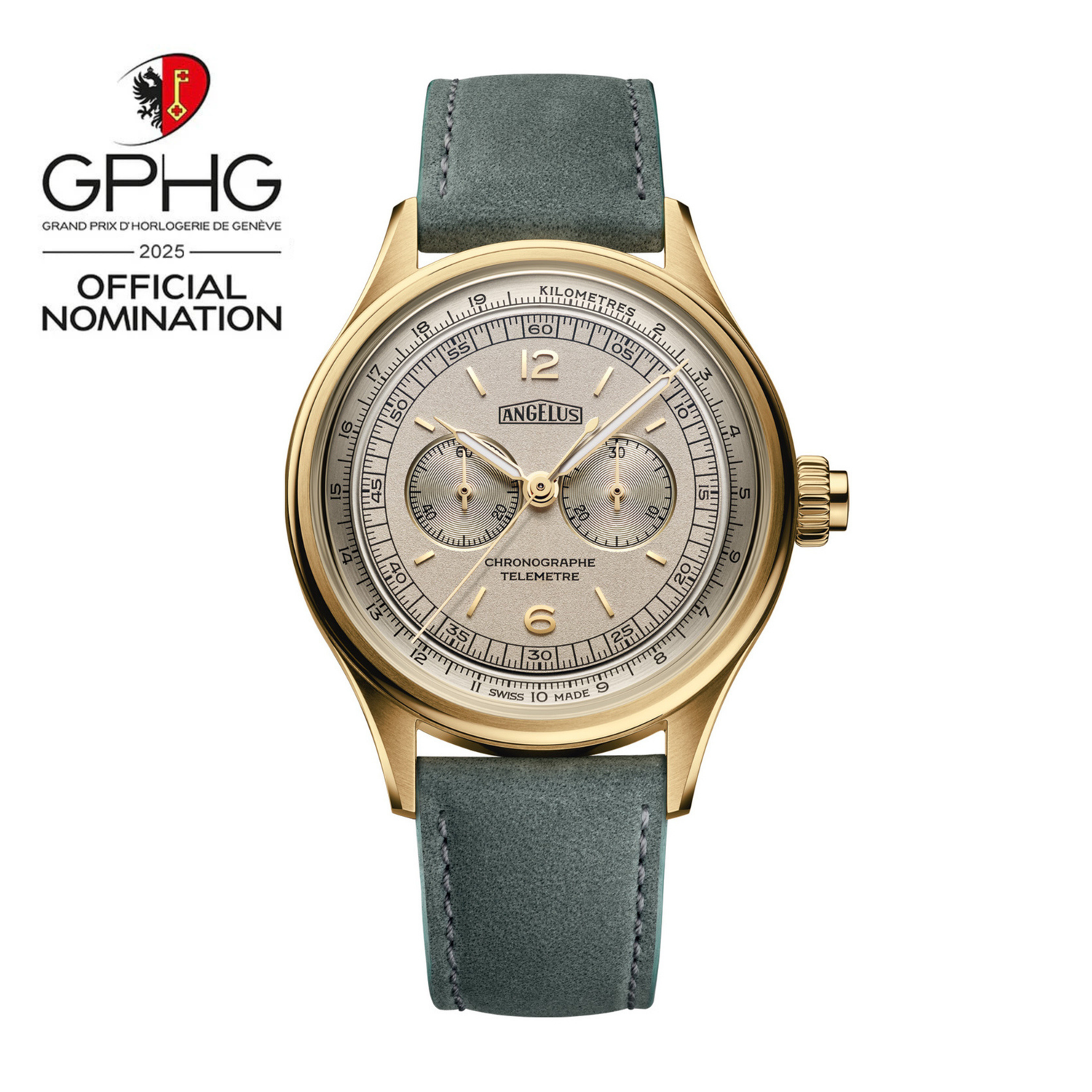 The Angelus Chronographe Télémètre x Massena LAB is the sister watch to the Angelus Chronographe Télémètre Yellow Gold, which has been nominated for the Chronograph Watch Prize in the 2025 edition of the Grand Prix d'Horlogerie de Genève.