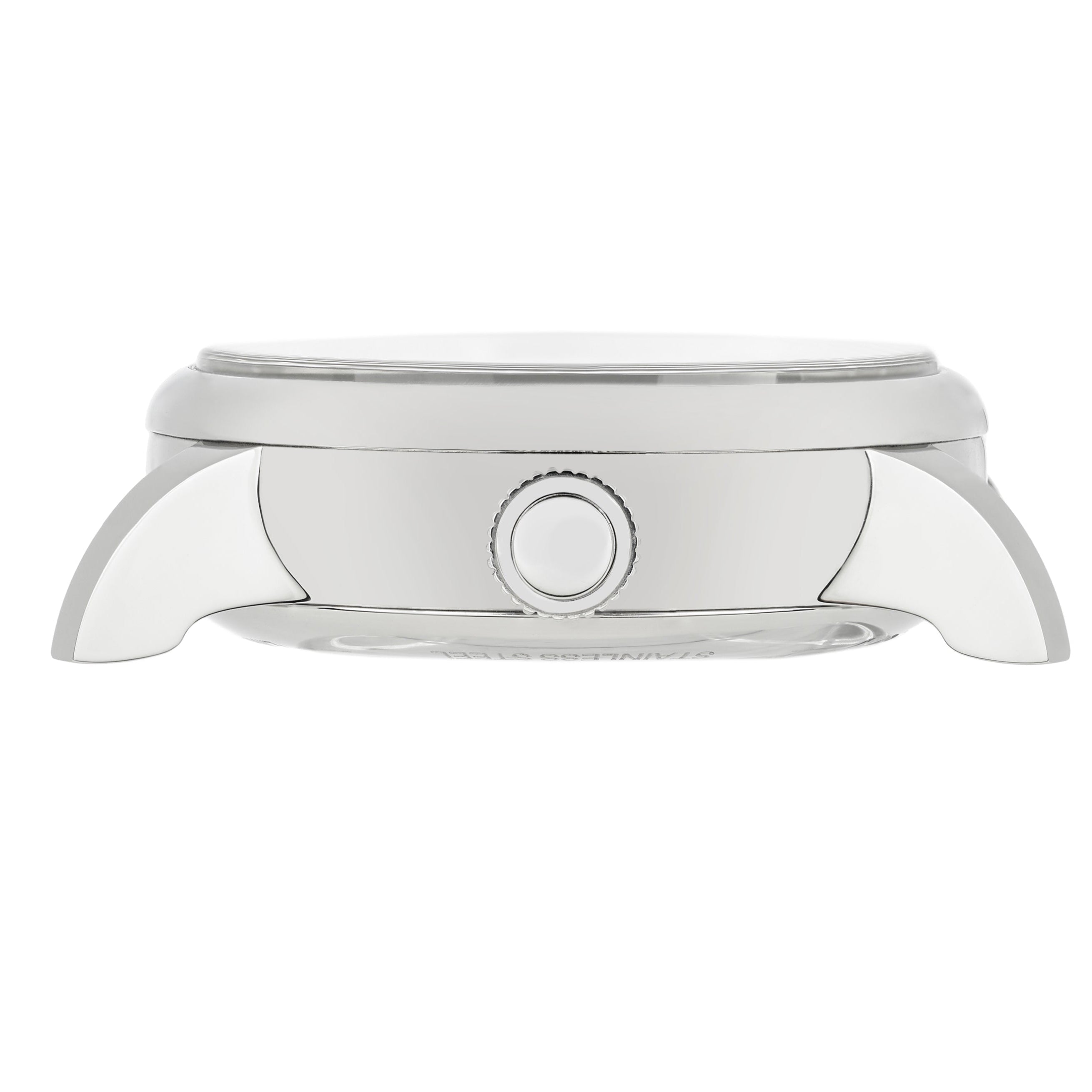 • Rhodium-plated outer sector ring. Silvered opaline thirty-minute counter.