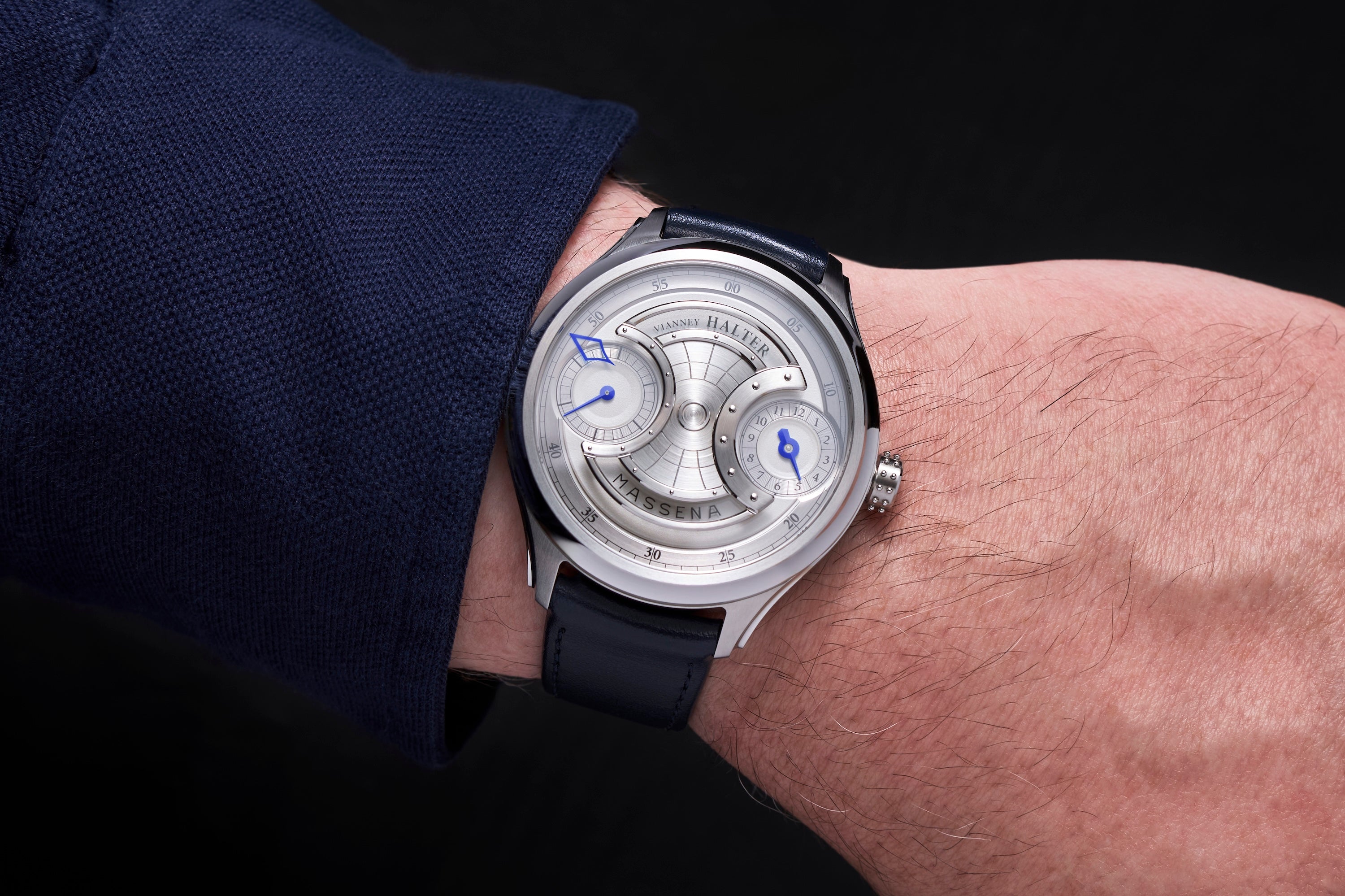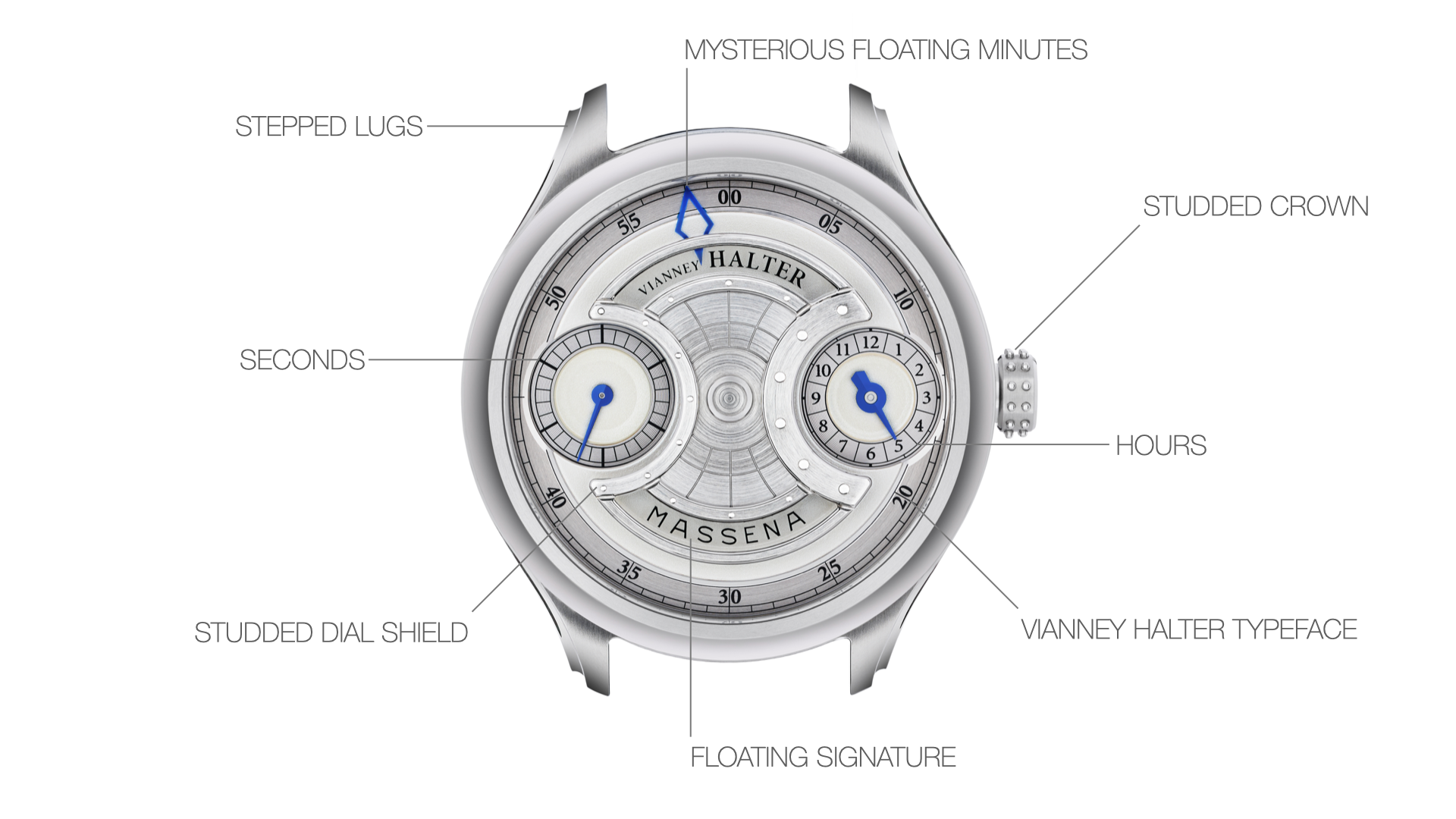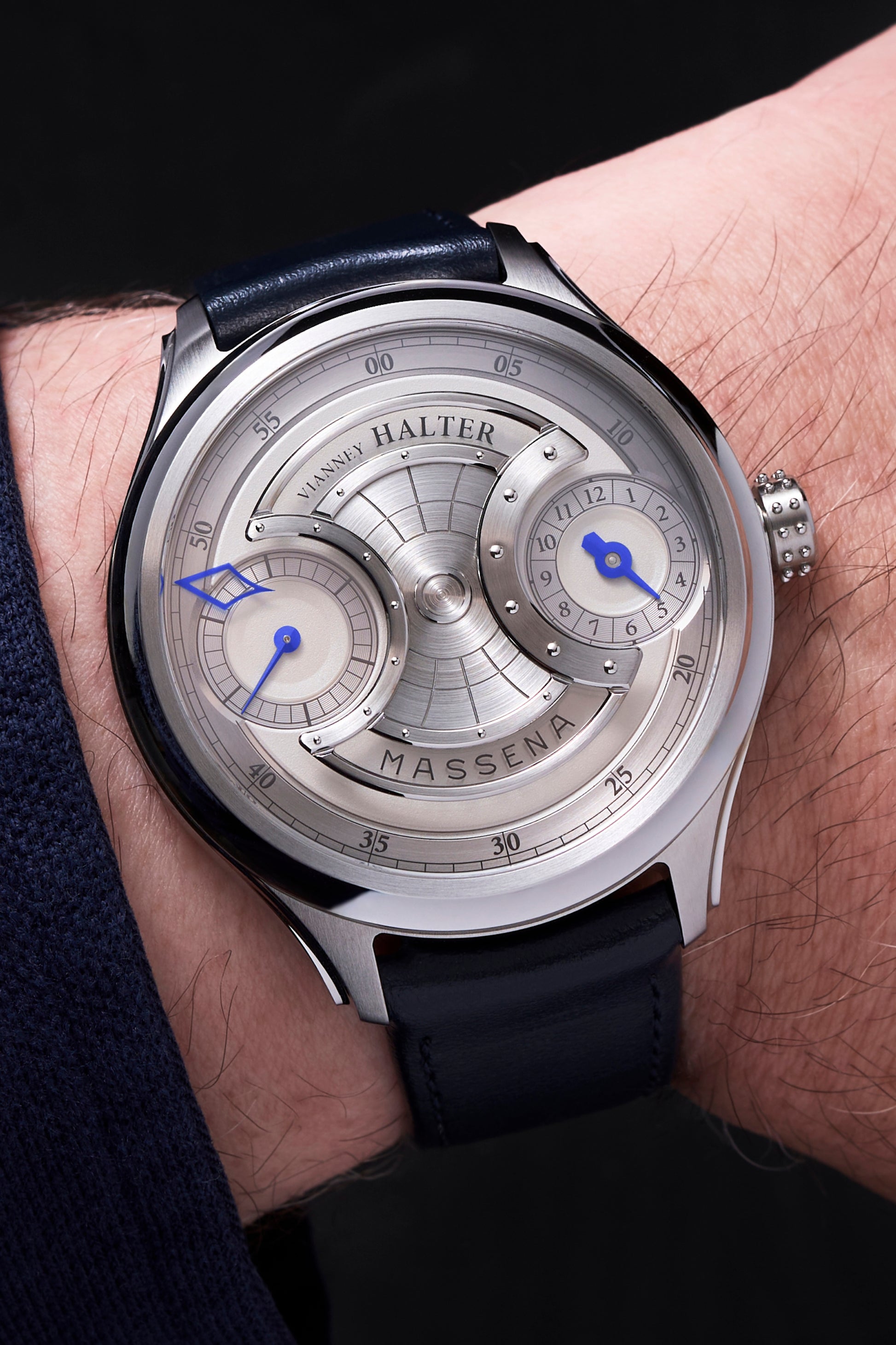 • Double signed “Vianney Halter” and “Massena” – signatures etched into sapphire crystal.