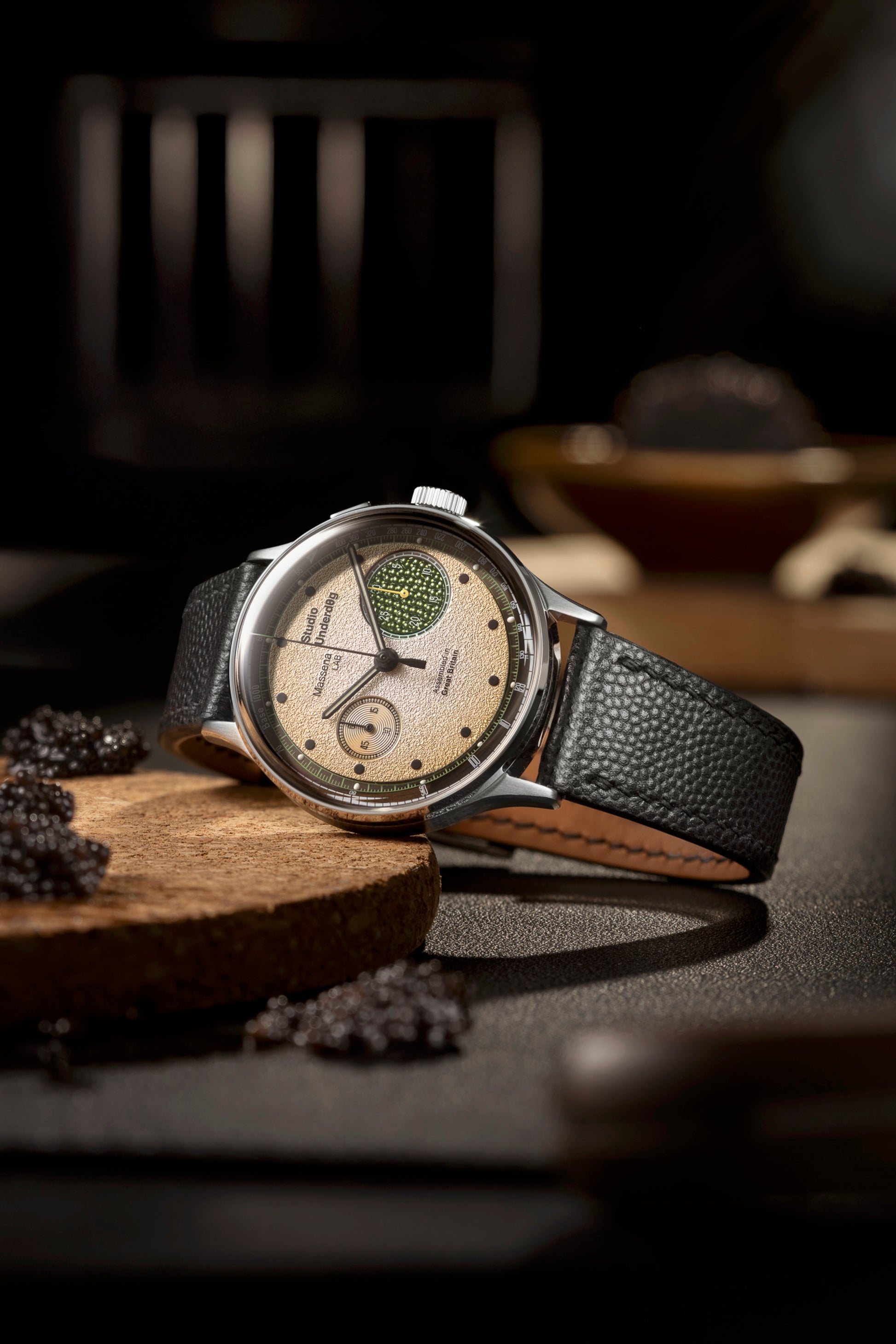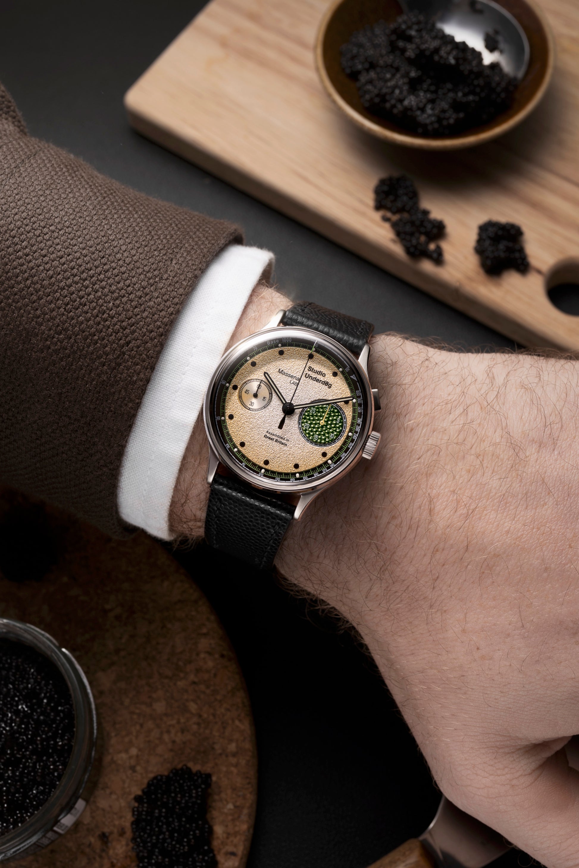 Limited-edition, monopusher chronograph invoking the excesses of champagne and caviar.