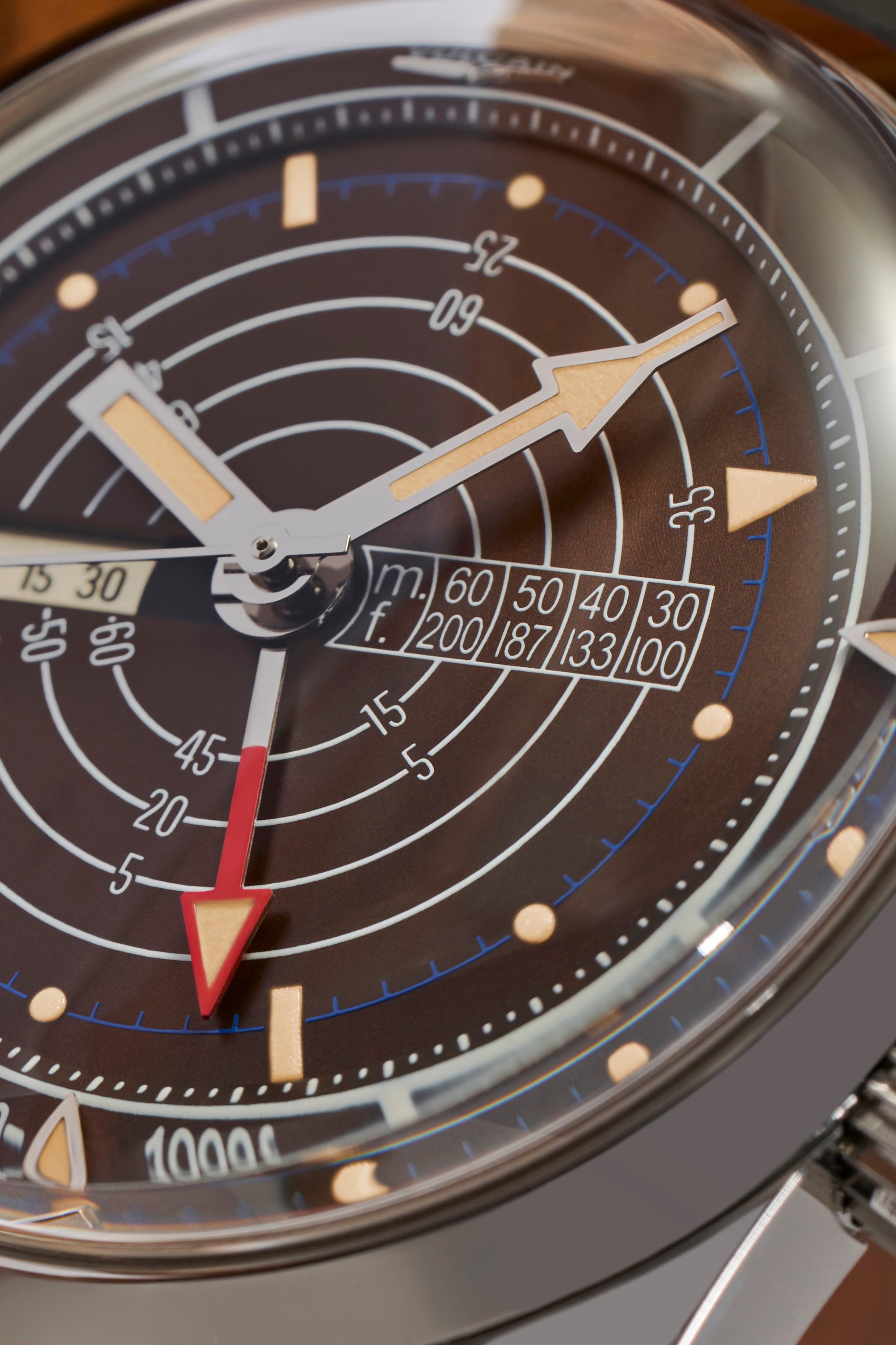• Manual-wound, in-house movement. Cricket Alarm Calibre V10.